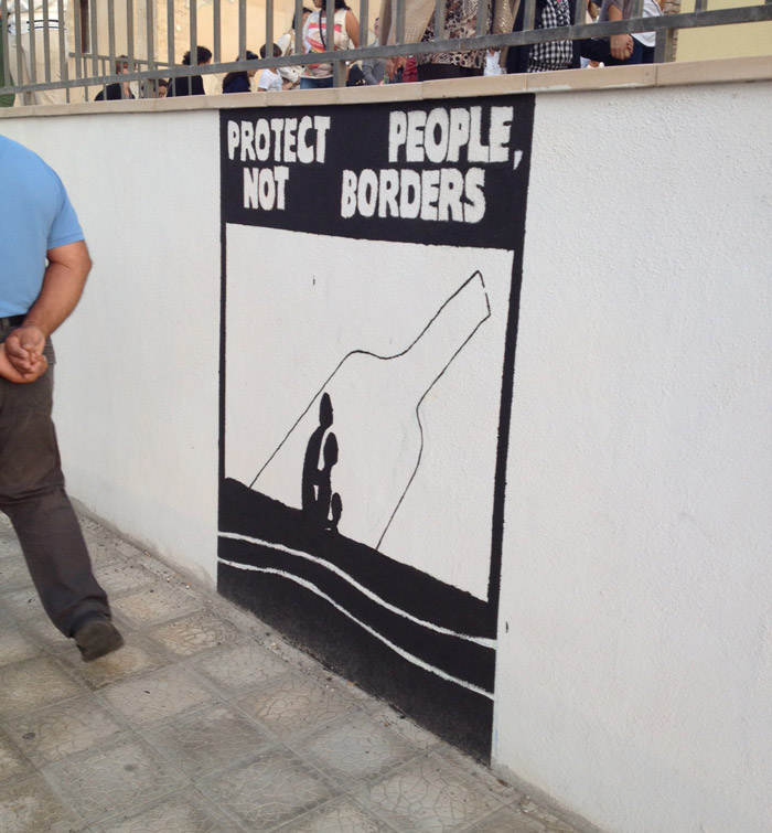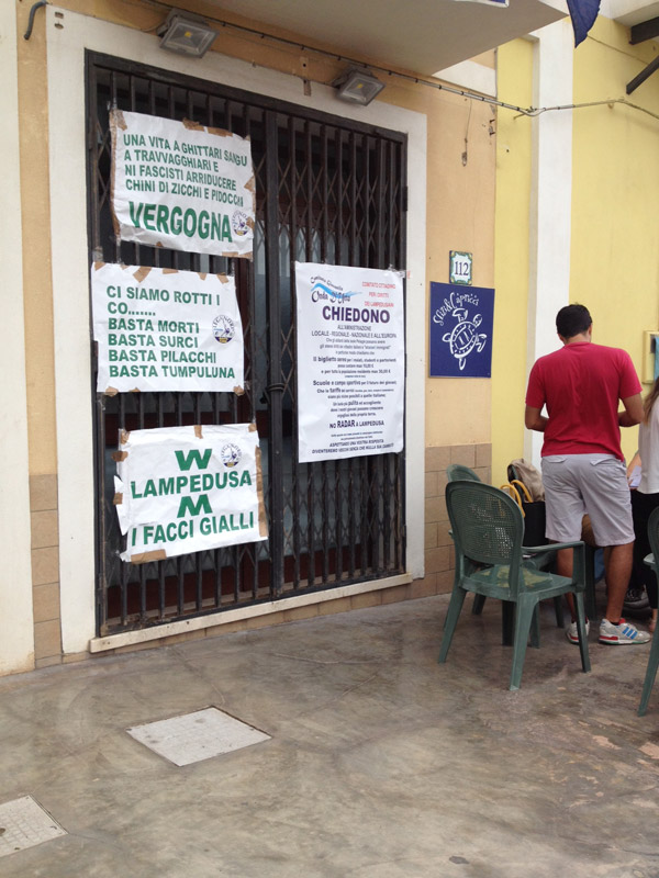 A Lampedusa in questo momento il centro di accoglienza è chiuso da mesi, e quando arrivi sulla via dello struscio, Via Roma, vedi i turisti con le infradito. È un posto complesso, come tanti altri, che ha incredibili bellezze e anche molti problemi. Non c’è nulla di quell’immagine televisiva. Grazie a “Mare Nostrum” (programma di salvataggi in mare che a breve sarà chiuso), ci dice la sindaca Giusi Nicolini, solo 3.000 persone sono transitate per di qua nell’ultimo anno a fronte dei 30.000 in media che vi transitavano prima.