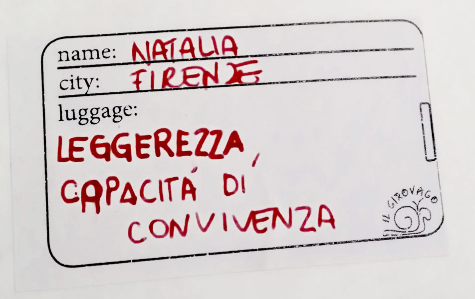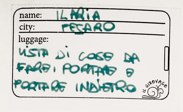 Le etichette delle valigie riportano quasi sempre nome, cognome e indirizzo dei proprietari, nella speranza di non perdere i bagagli neppure nel più distratto degli aeroporti… Ma cos’è in fondo che non si vuole perdere davvero? La valigia, il suo contenuto, oppure qualcos’altro ancora? Qual è il bagaglio strettamente indispensabile per viaggiare? Può essere contenuto dentro una valigia?