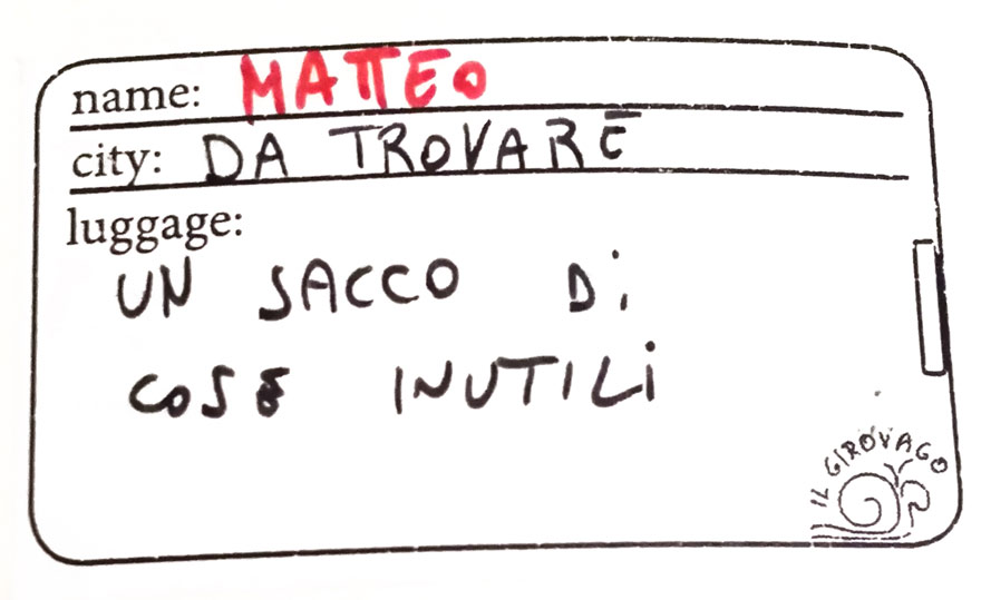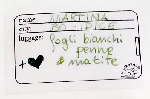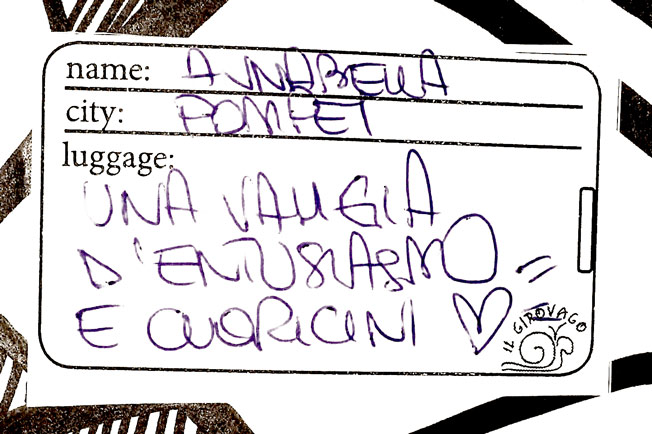 Ultimo non ultimo, ma ancora tante ed egualmente affascinanti sono le etichette da valigia si possono leggere nello slideshow che segue, c’è chi sa che si porterà “un sacco di cose inutili”. Aspettando che qualcosa di utile, magari, nasca dallo stesso viaggio.